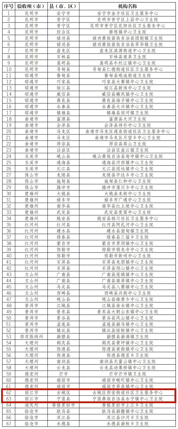 根据相关文件要求,云南省卫生健康委员会于2024年9月3日至14日组织专家,对经相关州(市)复核达到国家推荐标准及社区医院建设标准的基层医疗卫生机构进行省级现场评估验收,昆明市安宁市金方社区卫生服务中心等67家乡镇卫生院(社区卫生服务中心)达到国家推荐标准,2家社区卫生服务中心达到社区医院建设标准,现按程序予以公示。