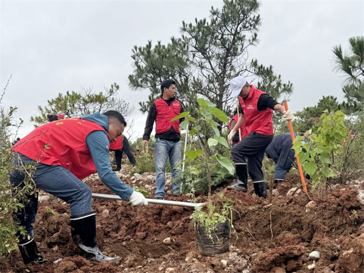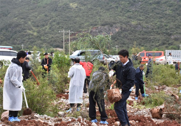 7月1日,2025年市直机关义务植树活动在玉龙县白沙镇举行。 (丽江融媒记者 张小秋 摄)